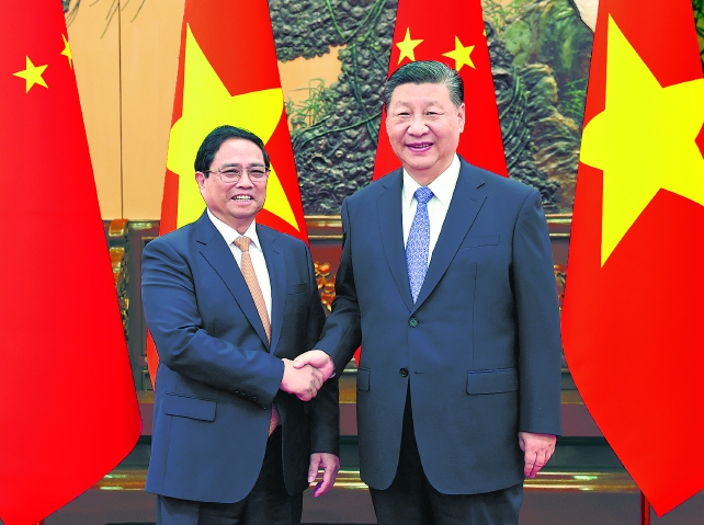 شي جينپيڭ بىلاي دەپ باسا دارىپتەدى: جۇڭگو رەفورمانى جاپپاي تەرەڭدەتۋگە، جۇڭگو ۇلگىسىندەگى وسىزامانداندىرۋدى ىلگەرىلەتۋگە تاباندى بولادى، بۇل ەكى جاقتىڭ ەكونوميكا ـ ساۋدا، ۇلاستىرۋ ـ تۇتاستىرۋ، سيفرلى ەكونوميكا سياقتى سالالارداعى سەلبەستىكتى كەڭەيتۋىنە جاڭا وراي اكەلەدى. ەكى جاق جوعارى جىكتەگىلەردىڭ اۋىس ـ كۇيىسىن ساقتاپ، ”ٴبىر بەلدەۋ، ٴبىر جولدى“ جوعارى ساپالى بىرگە قۇرۋدى بىرگە ىلگەرىلەتىپ، ەكى ەلدىڭ ۇلاسۋ ـ تۇتاسۋ دەڭگەيىن جوعارىلاتىپ، ەكى ەلدىڭ ناقتى سەلبەستىگىنىڭ جوعارى ساپالى دامۋىن ىلگەرىلەتۋ كەرەك. جۇڭگو جاق اناعۇرلىم كوپ جۇڭگو كاسىپورنىن ۆيەتنامعا قارجى قوسۋدى ارتتىرۋعا شابىتتاندىرۋدى قالايدى، ۆيەتنام جاقتىڭ جۇڭگو كاسىپورىندارىنا تەڭ، ٴادىل، كەمسىتپەيتىن شارۋاشىلىق ـ ساۋدا ورتاسىن ازىرلەۋىن ٴۇمىت ەتەدى. ەكى جاق ەكى پارتيانىڭ دوستىق بارىس ـ كەلىسى قىزىل بايلىعىنان ۇتىمدى پايدالانىپ، شەكارا ولكەلەرىنىڭ اۋىس ـ كۇيىستى كۇشەيتۋىنە قولداۋ كورسەتىپ، اۋىل شارۋاشىلىعى، وقۋ ـ اعارتۋ، ەمدەۋ سياقتى حالىق تۇرمىسى نىساندارىن ويداعىداي اتقارىپ، حالىقتىق، جاستار سياقتى اۋىس ـ كۇيىس تۇعىرلارىنان ويداعىداي پايدالانىپ، جۇڭگو _ ۆيەتنام دوستىعىنىڭ حالىق رايى نەگىزىن بەكەمدەۋى كەرەك. ەكى جاق تەڭىز ماسەلەسىن ۇيلەسىمدى شەشىپ، تەڭىزدەگى بىرگە اشۋدى جەدەل ىلگەرىلەتىپ، ٴوڭىردىڭ بەيبىتشىلىگىن، ورنىقتىلىعىن بىرگە قورعاۋى كەرەك.